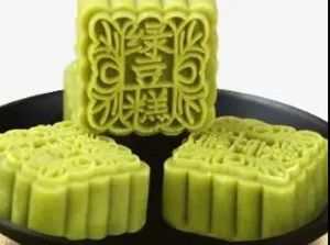 7、把适量豆沙放入模具中,压实,然后左右轻敲使边缘先脱离,然后把模具向下扣压并磕出完整的形状