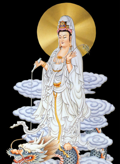 旁人见了他如此神气,争著向他询问所以然来,少年那里肯说出真情,自出其丑,只向众声言道:“众位也不必问我,如其有意思,不妨化费三文,也照一照,包管能够满意就是了。”毕竟好事的人多,一听了少年的话,争著要一试这新鲜把戏,你也出三文我也出三文,轮流著试照,没有照过的争先恐后,照过的不是哭丧著脸,便是攒眉蹙额,现出失望的颜色,最低限度,也得露出十分惊异的神情。大家你看著我,我看著你,口虽不言,却是彼此心照不宣。这么一来,瞧热闹的人,也著实不少,风声一传开去,真有万人空巷来观之慨呢!菩萨却只向著大众含笑不言,由辰至酉,足足照了三千来人,这三千来个人里面,照了忧愁懊丧的,倒要占十分之九,喜悦偷快的不过十分之一。当下菩萨向众说道:“如此宝物,只费一千两银子,却终于只有照的人,没有买的人,可见俗眼,到底没有识货的人,天已不早,老身却要走了。”说罢便将铜镜收放在匣子里边,站起身来弹了弹衣上尘沙,抬起头来时,法像却又换了。在各人眼中变成种种不同的形状,在恶人眼中看去,那老奶奶顿时变成金神七煞模样,十分凶恶,看了令人胆战心惊;在寻常人眼中看去,或作嗔怒之容,或作忿恨之状,也是令人寒心;只有在善人眼中看去,却是慈眉善目的一位观世音菩萨。当下有一班人受了惊吓,纷纷逃走,在一阵乌乱之中,那老奶奶已不见了,于是大家知道是菩萨来点化大众,于是各述所见,大概可分为三副面目:一付是慈眉善目的菩萨面,一副是大忿怒面,一副是含嗔面。其中有几个老人提议,好在刚才每人所出的照镜钱,仍留在此,就用来在原处建庵塑像供养,这一尊像,也分三面,正面菩萨面,左厢是大忿怒面,右厢是含嗔面,手持宝镜,俗称为三面观音,其实是游戏三昧观世音啊!自此之后,那一班有过作恶之人,因为照见来生受苦情形,也都憬然觉悟,改过自新,湔涤罪业。
