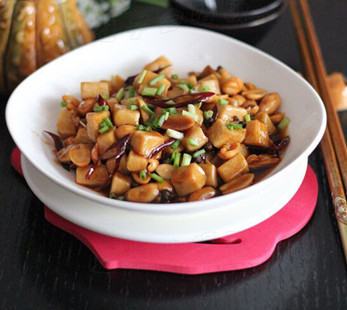 主料:杏鲍菇,麻辣花生辅料:食盐、醋、蒜、生抽、淀粉、白糖、芝麻油、植物油