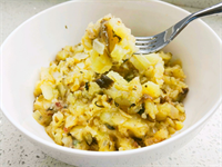 2. 用叉子捣成泥,可以不用特别细腻,留一些洋芋块口感也挺好;
