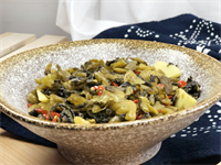 1. 酸菜茎和叶洗净分开,叶直接切丝,茎斜刀切薄片;