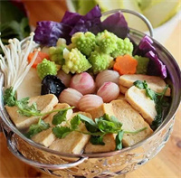 十一、日式味增锅日本人爱喝味噌汤不仅因其味道鲜美,而且可以帮你打击肥胖敌人糖类和油脂。除此之外,还能帮助排毒,让你健康又美丽。味噌中有2种神奇成份,大豆皂精和类黑精。味噌是发酵食品,所以有很好的整肠功能,能排除体内的废物,帮助制造小瘦子体质,除此之外,味噌中含有的大豆皂精还能防止脂肪氧化、促进新陈代谢喔!用咸鲜的味增汤来做火锅汤底,能让人尝到素食本身具有的新鲜美味。