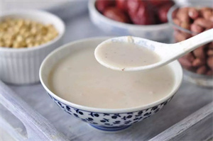 用料:黄豆 55 克、核桃仁 10 克、黑芝麻 5 克、清水适量。制法:1、将黄豆浸泡 6—16 小时。2、将泡好的黄豆与核桃仁、黑芝麻一起装入豆浆机中,杯体内加入足量清水,启动机器,十几分钟后豆浆煮熟。功效:益智健脑。