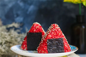 熟米饭120克、荠菜20克、甜菜根50克、白芝麻少量、海苔2片、沙拉酱适量、寿司醋10克