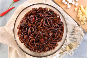 6. 加适量水,煮制浓稠关火7. 水烧开,下入面条煮沸,加入适量冷水煮熟,捞出过凉8. 淋上酱汁,拌匀开吃