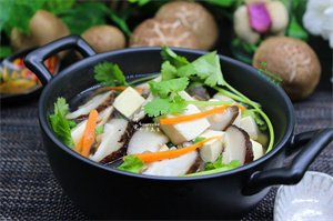 1. 胡萝卜去皮洗净,切丝;香菇洗净沥干水,切片;2. 热锅,倒入一点点油,小火煸炒香菇至香味;3. 加入胡萝卜丝,炒软;4. 倒入高汤,煮沸,没有高汤的可以加入沸水;5. 豆腐放在手上直接切块,入锅;6. 盖上盖子大火煮沸,改为小火炖3-5分钟;7. 放盐、香菜出锅即可。