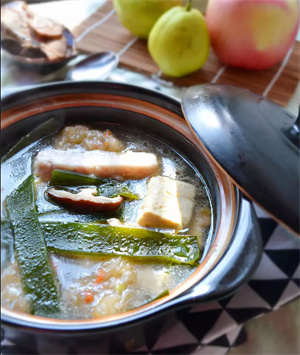 海带,豆腐、芋头,干香菇、香油、盐、蔬果粉