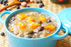 材 料: 黑豆50克,糯米30克,大米40克,小米30克,南瓜一小块,花生1小把