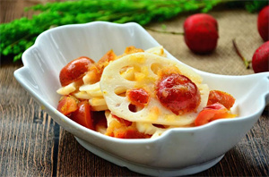 材 料: 莲藕一节,山楂10颗,老冰糖30克