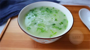 步 骤: 1、清水洗干净小白菜 2、米饭入锅煮开后调小火 3、煮粥底的时候把小白菜切碎 4、粥底煮至粘稠时下入小白菜 5、加一点芝麻油保持小白菜的碧绿 6、顺时针一直搅拌粥,直至越来越粘稠就好了。 7、用米饭煮粥非常快手,简单的养胃的小白菜粥就好了。