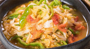 -材 料-卷心菜 300克西红柿 150克青椒30克 盐3克蔬果粉2克 姜片少许
