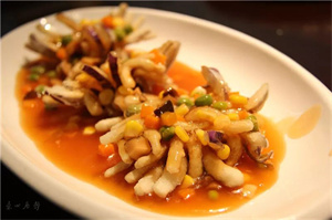 -做 法-1. 茄子切五公分长的段,再切成花状2. 将切好花的茄子段撒上盐腌制3. 大约腌制15分钟以后,茄子腌软出水,然后再用清水洗掉盐份并且略微挤干水分4. 胡萝卜,香菇均切丁,生姜切末和青豆,玉米粒放一起备用5. 将处理好的茄子拍裹干粉,注意粉要拍裹均匀6. 接下来炸制茄子,炸好后沥干油装盘备用7. 锅留底油,煸炒姜末,依次放入香菇丁,玉米粒,青豆,胡萝卜丁炒至断生8. 加入番茄酱,适量水,生抽,蔬果粉,白醋,胡椒粉,少许盐调好味后勾芡9. 最后浇在炸好的“菊花”上面就可以了