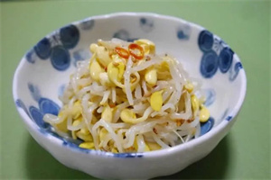 -材 料-黄豆芽 400g盐 一大勺蔬果粉 适量干辣椒 4只 胡椒粉 适量熟芝麻 适量芝麻油 一大勺