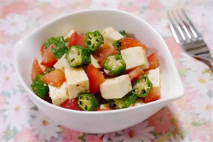 -做 法-1. 秋葵盐水烫一分钟冷水冷却后切丁,豆腐,番茄同样切丁2. 食材中加入备好的调味料,柠檬挤汁加入拌匀即可