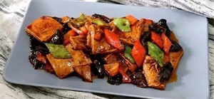-材 料-千叶豆腐 青椒 红椒 木耳 油 红油豆瓣酱 素蚝油 酱油 醋 盐 淀粉