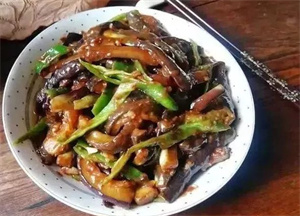 -材 料-茄子500克 尖椒3个 黄豆酱1汤匙 油盐适量 姜2片 水淀粉适量