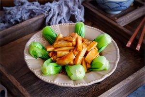 做 法:1、杏鲍菇洗净,切成小条2、放入热油锅内略炸一下备用3、油菜去根和老叶,洗净。4、锅中加入清水、盐、植物油煮沸,放入油菜焯至熟。5、捞出用冷开水过凉,码放在盘内6、炒锅中先不开火,加入清水、素蠔油、老抽、果蔬粉、精盐,调成酱汁搅拌均匀。7、开火,将汤汁煮沸。8、然后放入杏鲍菇煮2分钟,9、最后加入水淀粉勾芡,翻炒均匀至汤汁浓稠10、装入之前码好青菜的盘中即可。