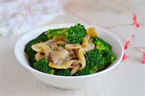 材 料:西兰花250g,平菇200g,生粉10g,金兰素蠔油、姜蓉、沙茶粉、盐适量