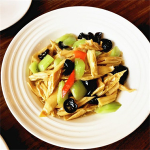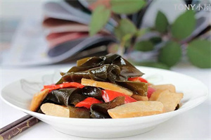 材 料:木耳,腐竹,黄瓜,生姜,红椒,水淀粉,植物油,盐,蔬果调味粉