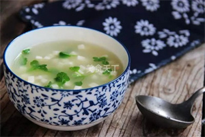 材 料:荠菜,韧豆腐,素高汤,水淀粉,香油,盐
