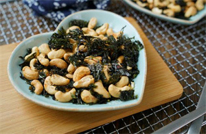 腰果300克,紫菜半张,胡椒粉少许,细盐