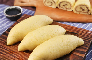 面粉200克、玉米面100克酵母3克、糖3克、红豆沙适量