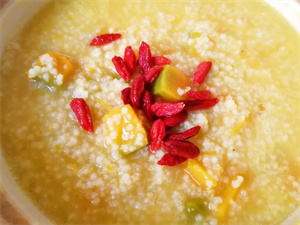 做法:1、南瓜去皮去瓤洗干净切成块。2、准备好小米淘洗干净。3、将南瓜和小米一起放进砂锅里。4、加入水大火烧开,转小火熬25分钟。5、下入洗干净的枸杞继续熬5分钟关火。6、在砂锅里焖一会儿再盛出。