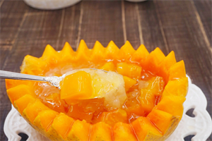 7. 剩下的半个木瓜修了个碗装木瓜羹,木瓜羹吃完把碗一起吃掉哈。