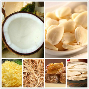 椰子润肺汤椰子肉,1个。 淮山,1两。南北杏,1两。 雪耳,少量。参须,少量。 蜜枣,2个。功效:润肺,除烦。