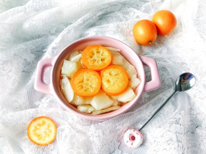 金桔8个、雪梨1个、冰糖20克、红枣6颗、枸杞5克