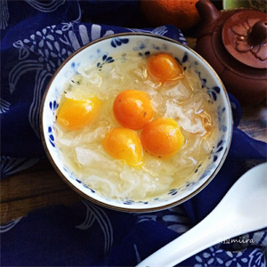 ① 银耳提前浸泡,掰小朵冲洗干净;② 将银耳放入汤锅,一次性加足水量;③ 大火煮沸转小火煮至粘稠;④ 金桔洗净改刀一分为二,去籽,加入银耳汤中;⑤ 放入适量冰糖,大火煮沸转小火慢煮;⑥ 煮至金桔软后即可。