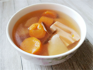 1. 莲藕,胡萝卜,山药洗净;2. 莲藕、胡萝卜、山药分别去皮切块3. 食材加陈皮放入电压力锅,按煲汤键开煮。4. 煲好排气后,加适量油、盐、鲜蔬粉调味即可