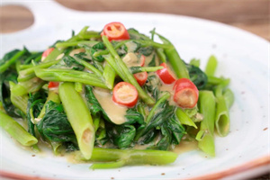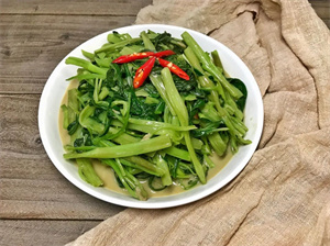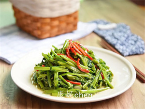◎高钾——每百克空心菜的钾含量可达到380mg。钾被称为“生命第一元素”,在稳定血压、维持正常心肌功能、保证神经肌肉的兴奋性等多方面都发挥着重要作用。夏天气温高,出汗量大,钾元素也流失得多,需要及时补充。