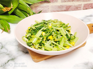 -做 法-1. 空心菜洗干净沥干水分切断备用;2. 热锅入油,炒香姜末,大火煸炒玉米粒;3. 倒入空心菜,大火煸炒一分钟;4. 加入盐和鲜蔬粉,大火继续煸炒一分钟出锅。