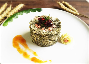 -材 料-空心菜300克、面粉100克、姜末、辣椒油适量、醋少许、盐适量