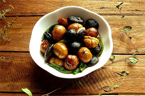 材 料:栗子,香菇,姜片,生菜,植物油,麻油,生抽,胡椒粉,盐