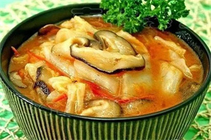 做法:香菇、大白菜、番茄洗净,切块待用。起锅,倒入少许油,爆香姜末,放入番茄块煸炒,煸炒时加少许盐和水,炒致略微成酱状出锅。另起锅,倒入少许油,放香菇片、大白菜煸炒,炒至菜软加水(水略微多些),倒入番茄,略微炖一会儿,调味加盐、蘑菇精不勾芡,出锅装盘即可。