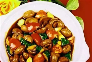 做法:蘑菇洗净切片,放入沸水中焯一下捞出;锅内放少许油烧热,加入蘑菇片翻炒片刻加适量水、红烧汁、糖和胡椒粉,大火烧开。转中火烧至收汁即可。