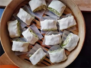 做法:面粉加清水搅拌成无粉的状态。 揉成团,做到手光盆光,覆上保鲜膜醒一会。准备馅料了,小萝卜,切成丝,豆腐切末。加油,加盐,加入适量的花椒粉,拌匀。 醒发好的面团拿出来揉成光滑的面团。 将面团擀成薄薄的面皮,最好擀成长方形。 将调好的馅料均匀的铺在面皮上,卷,切上蒸笼,蒸15分钟左右即可。