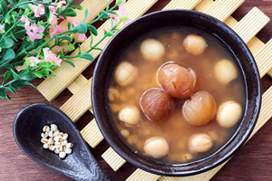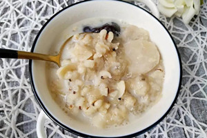 桂圆肉10颗,新鲜莲子30g,薏仁55g,冰糖适量。